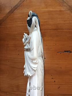 Okimono statuette Japan, 19th century. Statuette of an elegant woman with peonies, 19th century, height 26 cm, mounted on a carved wooden base.