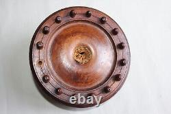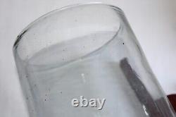 Superb and old butter churn with paddles, 19th century Popular Art, made of wood with an original blown glass container. The entire mechanism is handcrafted from wood. Note that the wood is aged in certain areas, the hand crank is missing, a small spindle is broken (no broken screws), there are woodworm holes, the churn needs restoration; otherwise, it is a very beautiful piece. Base diameter 21.5 cm, glass diameter 12 cm.