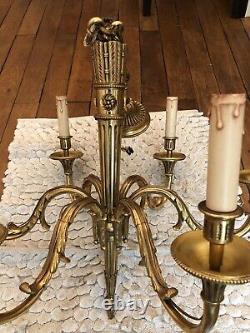 Très beau Lustre Six bras en bronze doré plein En parfait état pour l'électricité 54 cm haut 63 large 36 auteur de chaîne À retirer. Style Louis XVI époque XX ème. 15 kg Retirer sur place à Paris.